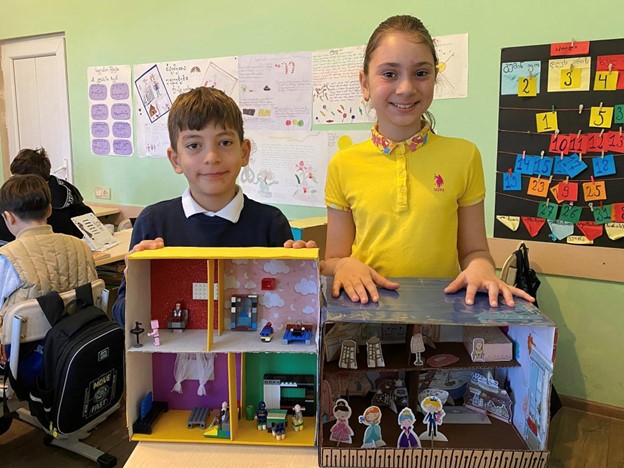 გერმანული ენის გაკვეთილის ფარგლებში, სამეტყველო უნარების განვითარების მიზნით, მე-3 კლასის მოსწავლეებმა დიორამები მოამზადეს თემაზე “ჩემი სახლი.”